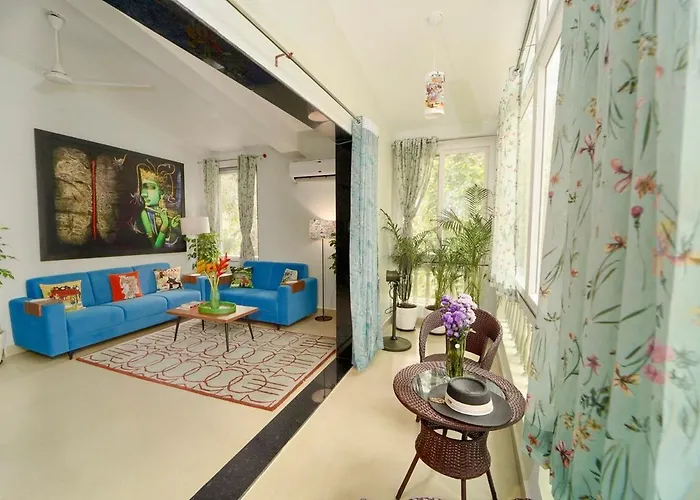 Located 2.8 km from Chapora Fort, the 2-room Eila By Savera 2 Bhk With Glass Balcony Next To Beach Morjim apartment overlooks the garden. Car rentals are provided for guests to explore the surroundings.